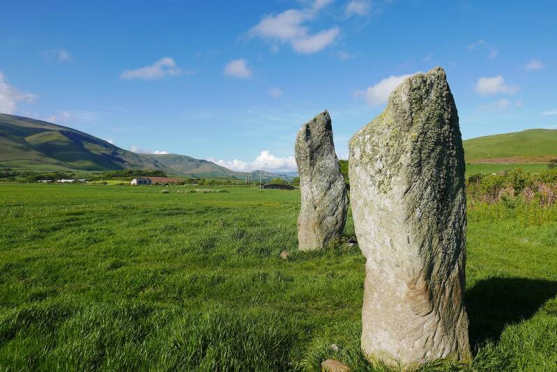 I personally think it likely that what we identify to be the "Norse-Gaelic" culture, at least in terms of the historic Kingdom of the Isles, which included for example, the Northern Isles, Hebrides and Isle of Man - likely connects to much earlier cultural and linguistic links, as I have implied. For example, that the Giant's Grave standing stones at Kirksanton have a similarity to some of those in the Hebrides and Isle of Man, may correspond to an earlier manifestation of this connection, but I think that perhaps, after the Bronze Age, the connections with the pre-Goidelic world may have become lesser, and may have only been maintained on a more localised scale. I personally think that some kind of pre-Norse language may have already been present in Cumbria at this time, and that whilst for example the Isle of Man became largely Goidelic-speaking, and had its Primitive Irish Ogham inscriptions too, that the orse language there, and/or pre-Norse language, was used in the making of a lot of runestones, but nevertheless was not the main spoken language. Whereas in Cumbria, we seem to have a "part" of this connection to the Goidelic World, particularly around places like Kirksanton, which are so close to the Goidelic World and can be considered a part of it - but that by and large a "Norse-like" language became the majority language.